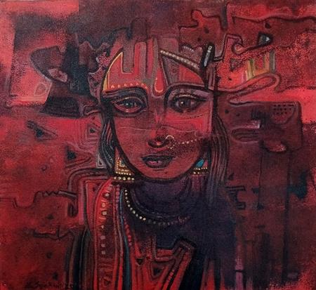 In the works of Sajal Kanti Mitra, figuration and abstraction exist in a continuous, deliberate dialogue. His paintings unfold within a threshold space where faces, bodies, and gestures momentarily emerge from layered fields of colour, only to recede again into atmosphere and rhythm. Rather than offering linear narratives, the works propose states of becoming, images held in suspension, as if caught between thought and emotion.